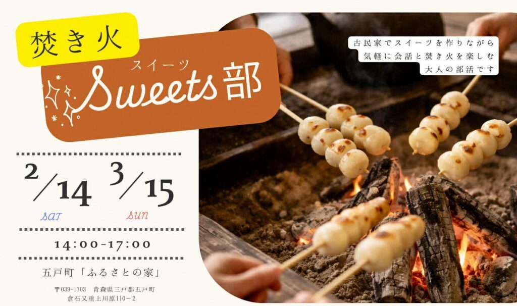【五戸町】2/14(土)「焚き火Sweets部 vol.2 いろりde焼き焼き編」(主催)ふるさとの家保存会