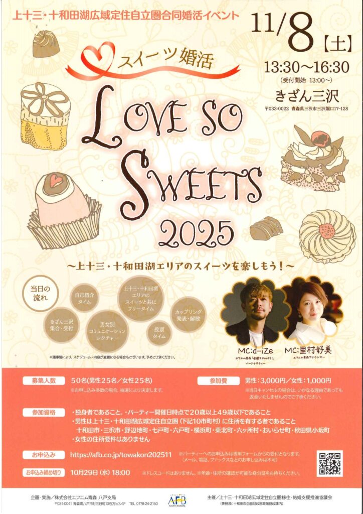 上十三・十和田湖エリアのスイーツを楽しみながら婚活