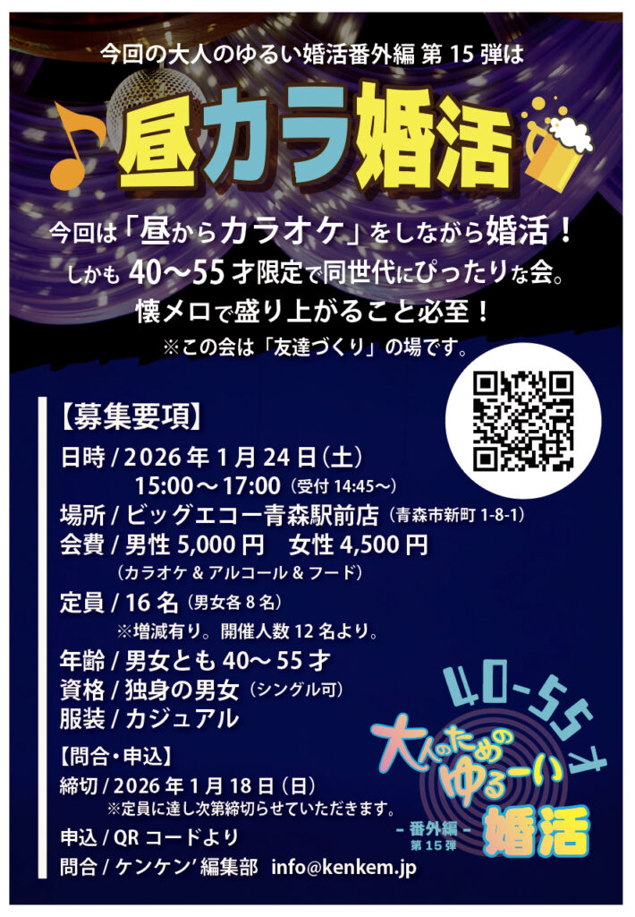 40~55才の「昼からカラオケ婚活」だから懐メロで盛り上がること必至!