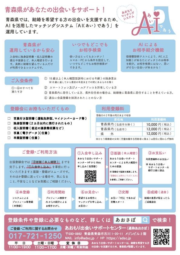 あおもりマッチングシステム『AIであう』について、詳しくはこちら