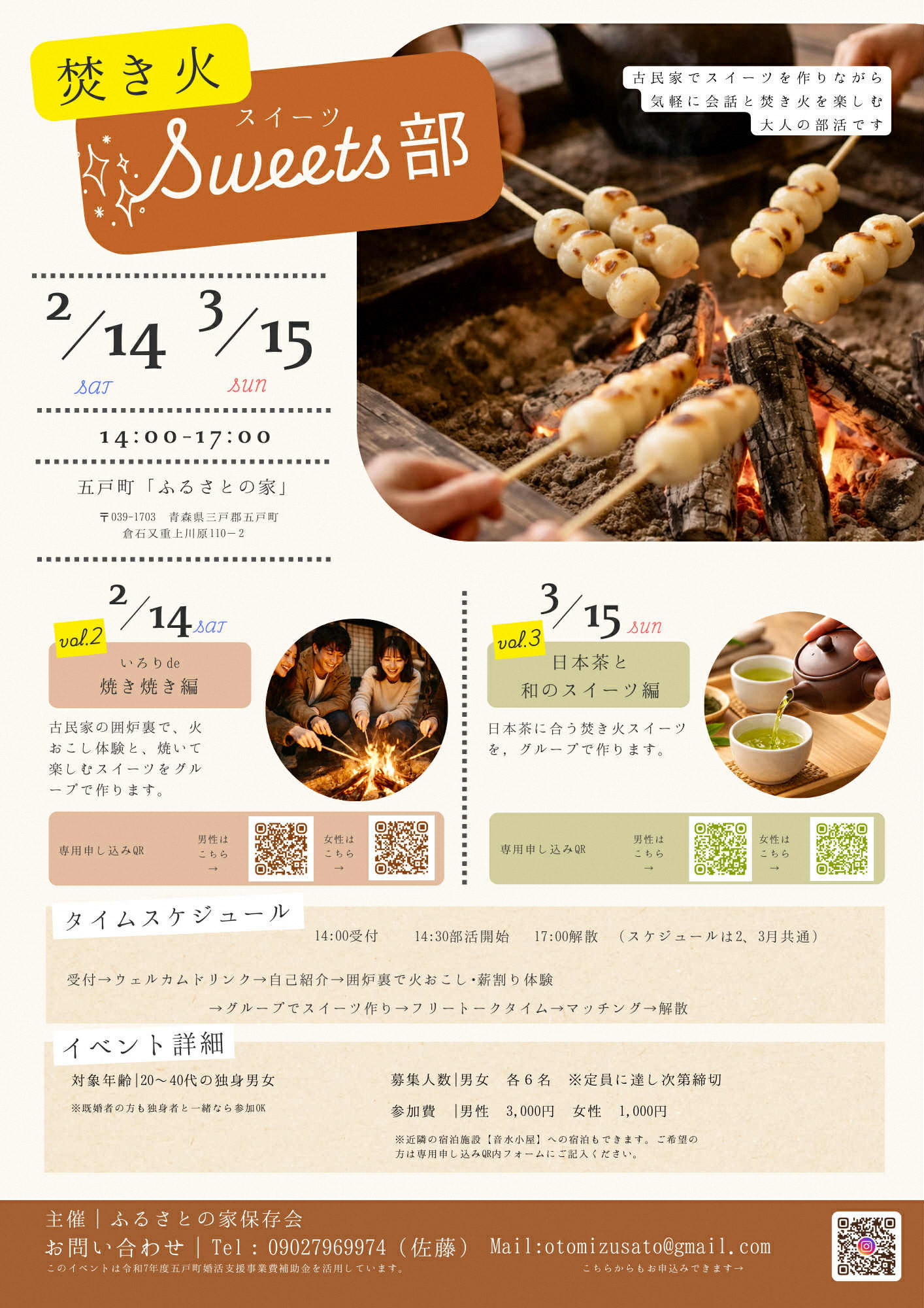【五戸町】3/15(日)「焚き火Sweets部 vol.3 日本茶と和のスイーツ編」(主催)ふるさとの家保存会